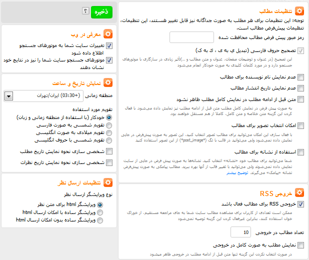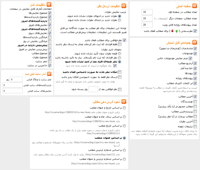 در این قسمت می توانید تنظیمات پیشرفته وبلاگ را انجام دهید.