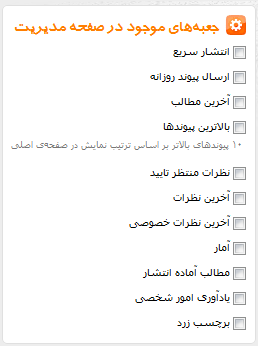مخفی سازی دکمه های راهنما: نمایه های که در کنار اغلب عنوین موجود در وبلاگ وجود دارند ابزاری هستند که با کلیک کردن روی آنها شما را به صفحات help هدایت می کنند. با فعال کردن این گزینه این نمایه ها از مرکز مدیریت وبلاگ حذف می شوند.