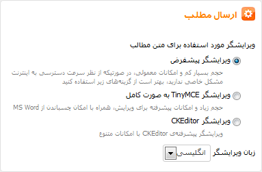 برای ارسال مطالب می توانید از یکی از سه ویرایشگری که در اختیار شما قرار گرفته استفاده کنید.