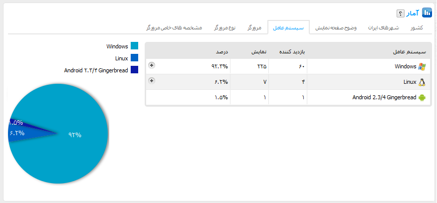 اطلاعات این قسمت نوع سیستم عامل مورد استفاده کاربران را نشان میدهد.