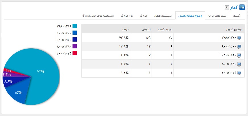 با استفاده از اطلاعات این بخش خواهید دانست کاربران بازدید کننده، وبلاگ شما را با چه وضوح تصویری مشاهده کرده اند.