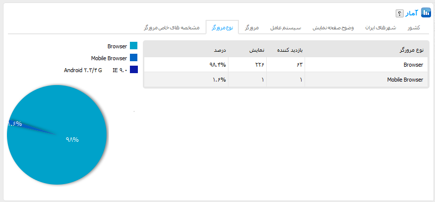 اطلاعات این قسمت به شما نوع مرورگر کاربران را نشان میدهد.