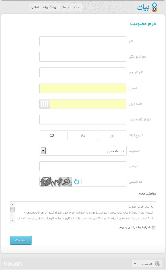 پس از تکمیل فرم مذکور روی کلیک کنید.