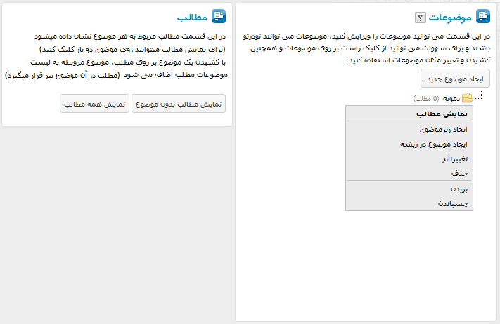 در این قسمت مطالب مربوط به هر موضوع نشان داده میشود