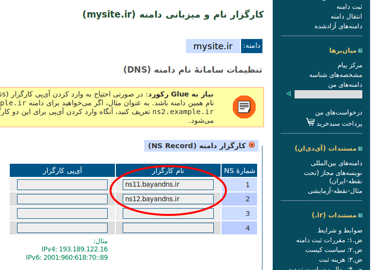 ns های بیان را که در همین مطلب ارئه شئه در قسمت مدیریت دامنه خود درج نمایید.