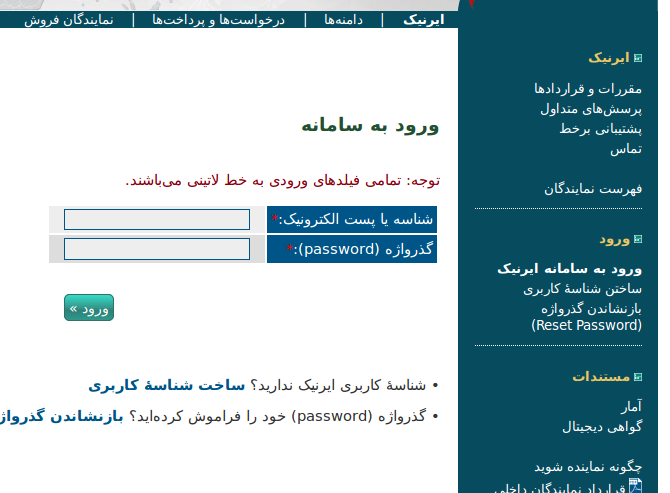 برای استفاده از این سامانه، شما باید از قبل در این سامانه ثبت نام کرده باشید، بعد از ثبت نام کافی است در صفحه اول لینک «ورود به سامانه ایرنیک» را کلیک کنید و در صفحه زیر مشخصات خود را وارد کنید.