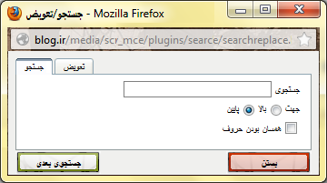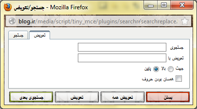 این ابزار به شما برای پیدا کردن یک عبارت یا جمله یا کلمه در متن و جایگزینی آن در صورت لزوم کمک می کند. با کلیک کردن روی آن پنجره ای مطابق شکل باز خواهد شد: