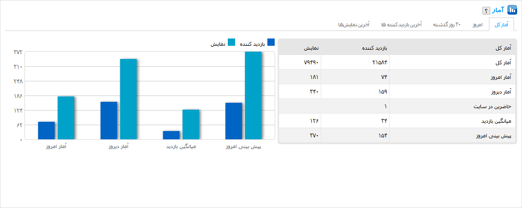 نکته: تعداد نمایش و تعداد بازدیدکننده شامل مدیران وبلاگ هم میشود. بعبارت دیگر، در سیتم آمار خود شما نیز بعنوان یک بازدید کننده شمارش می شوید.